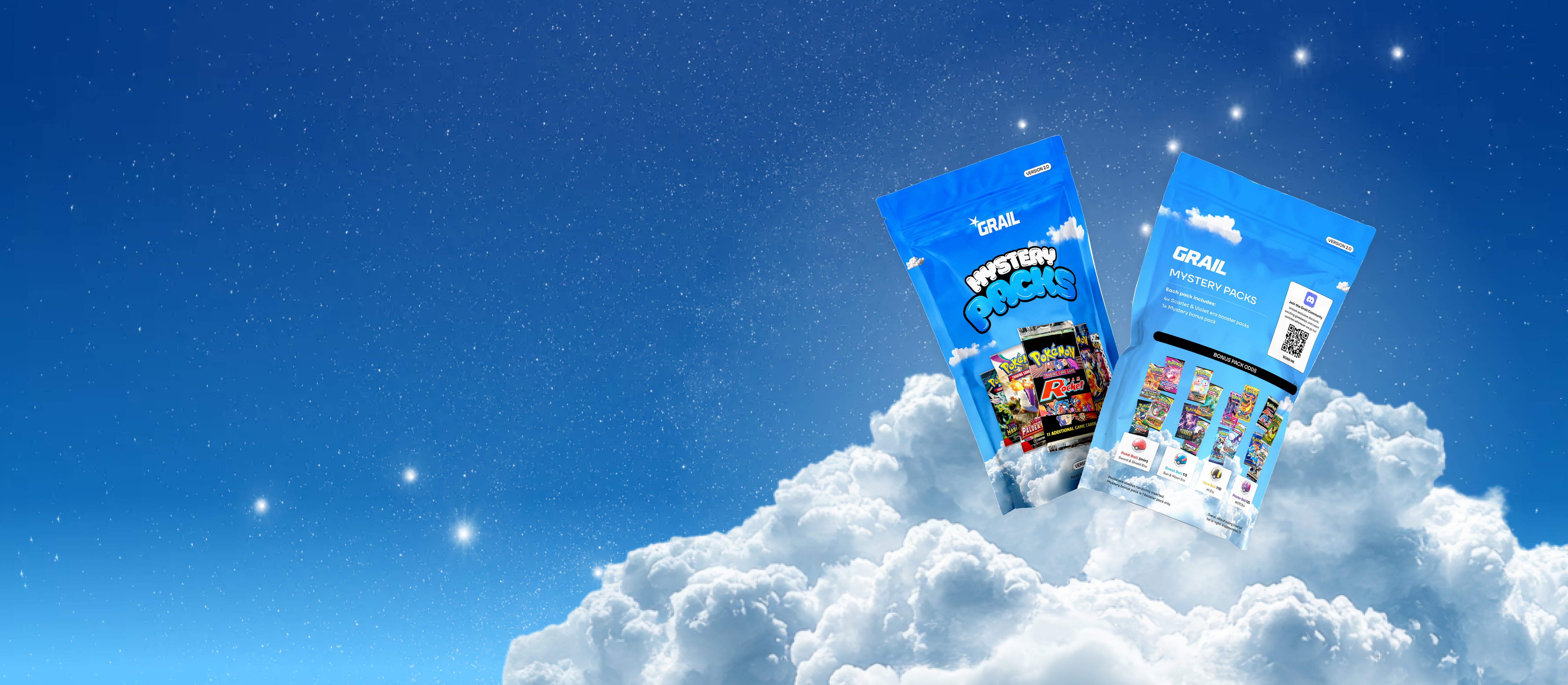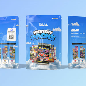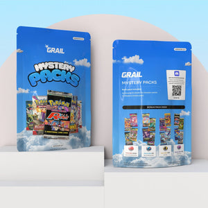 Each GRAIL Mystery Pack 2.0 contains 4 sealed Scarlet & Violet era booster packs as standard, plus 1 seeded mystery bonus pack from previous Pokémon eras.